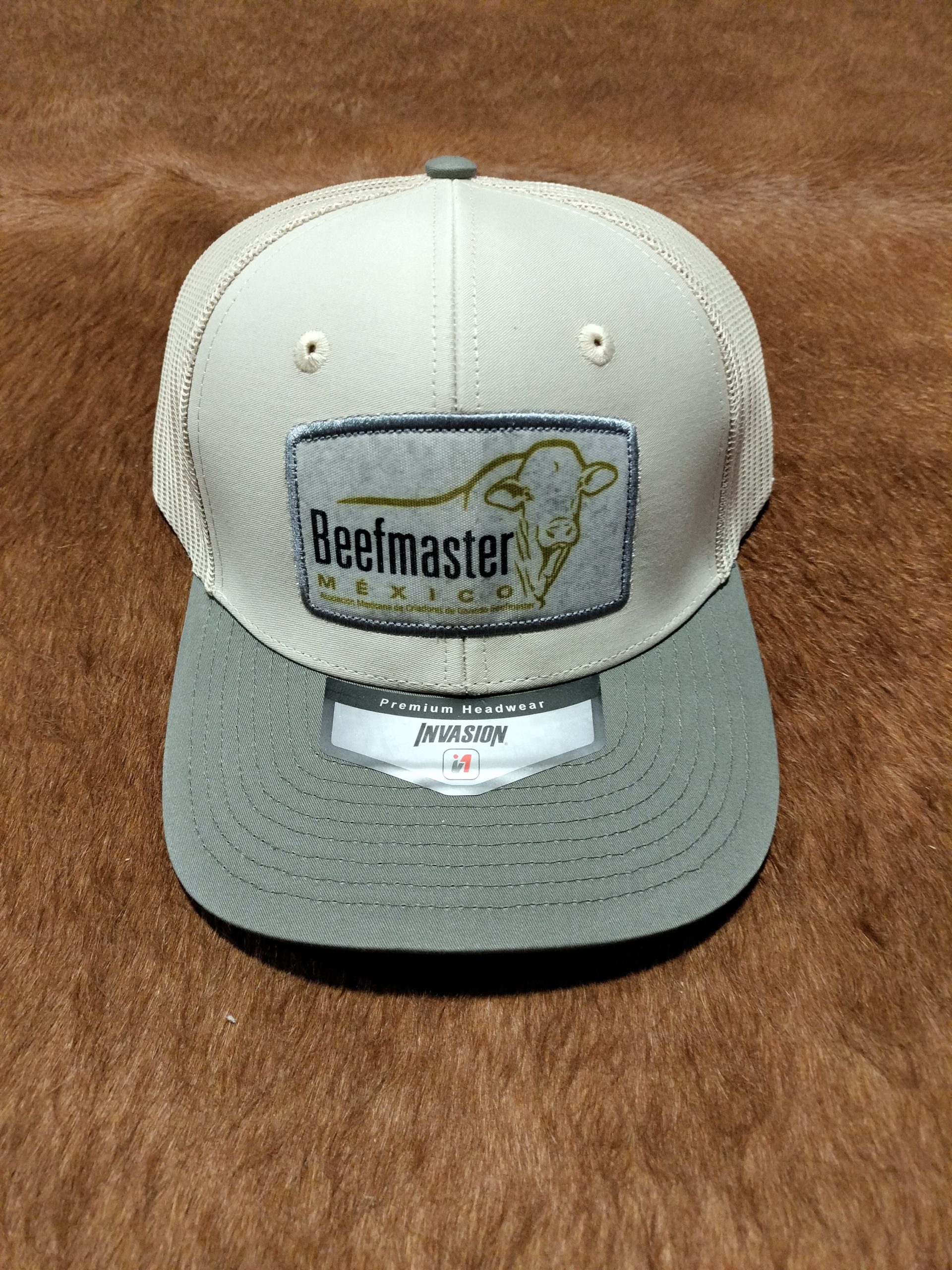 GORRA INVASION COLOR BEIGE VISERA GRIS, LOGO PARCHE SUBLIMADO AL CENTRO
