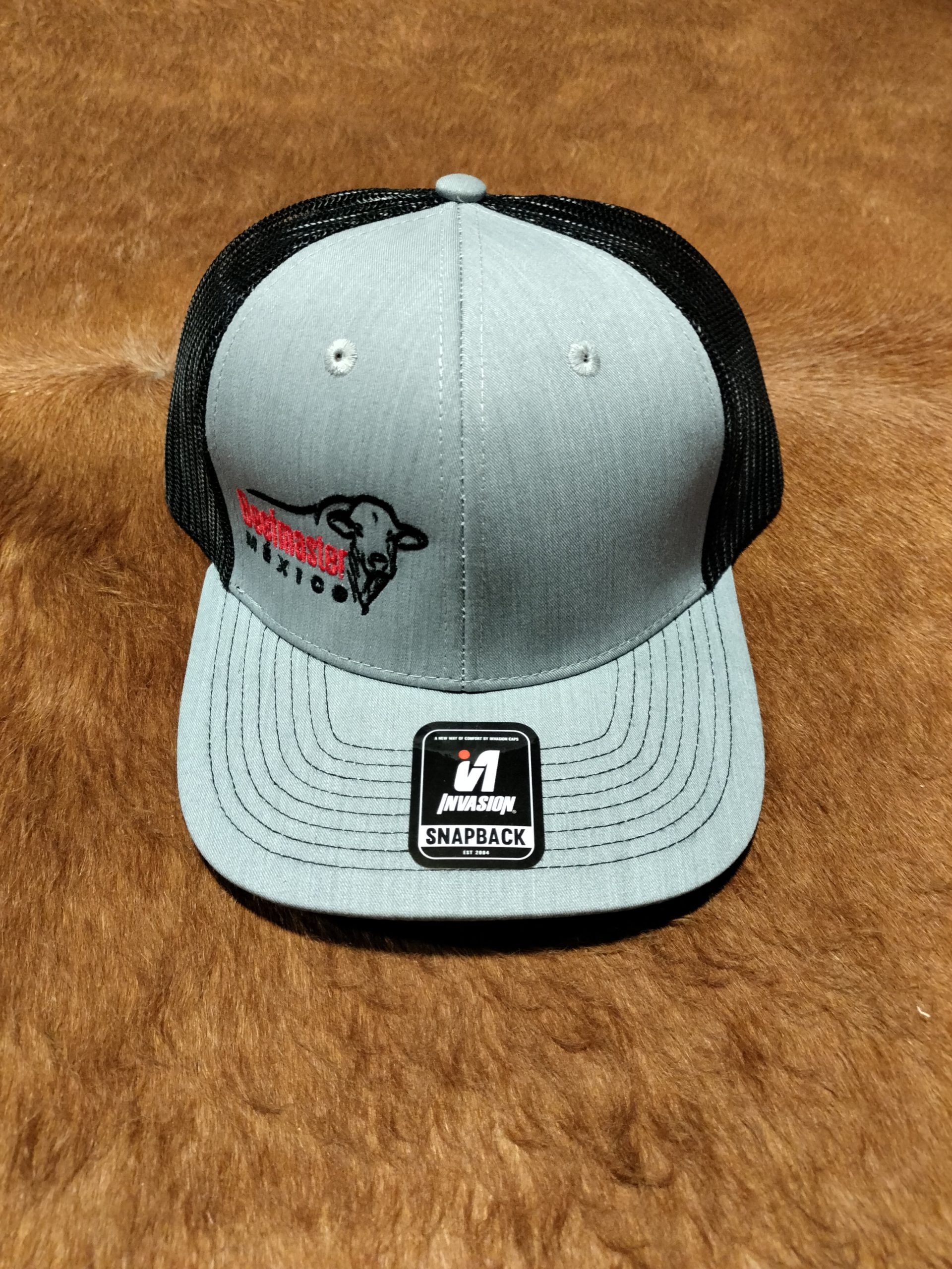 GORRA INVASION COLOR GRIS MALLA NEGRA LOGO BORDADO NORMAL  AL LADO